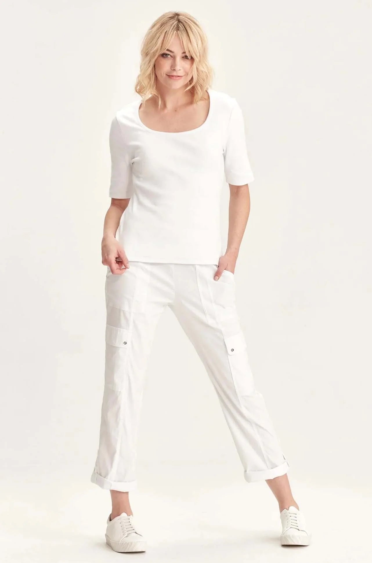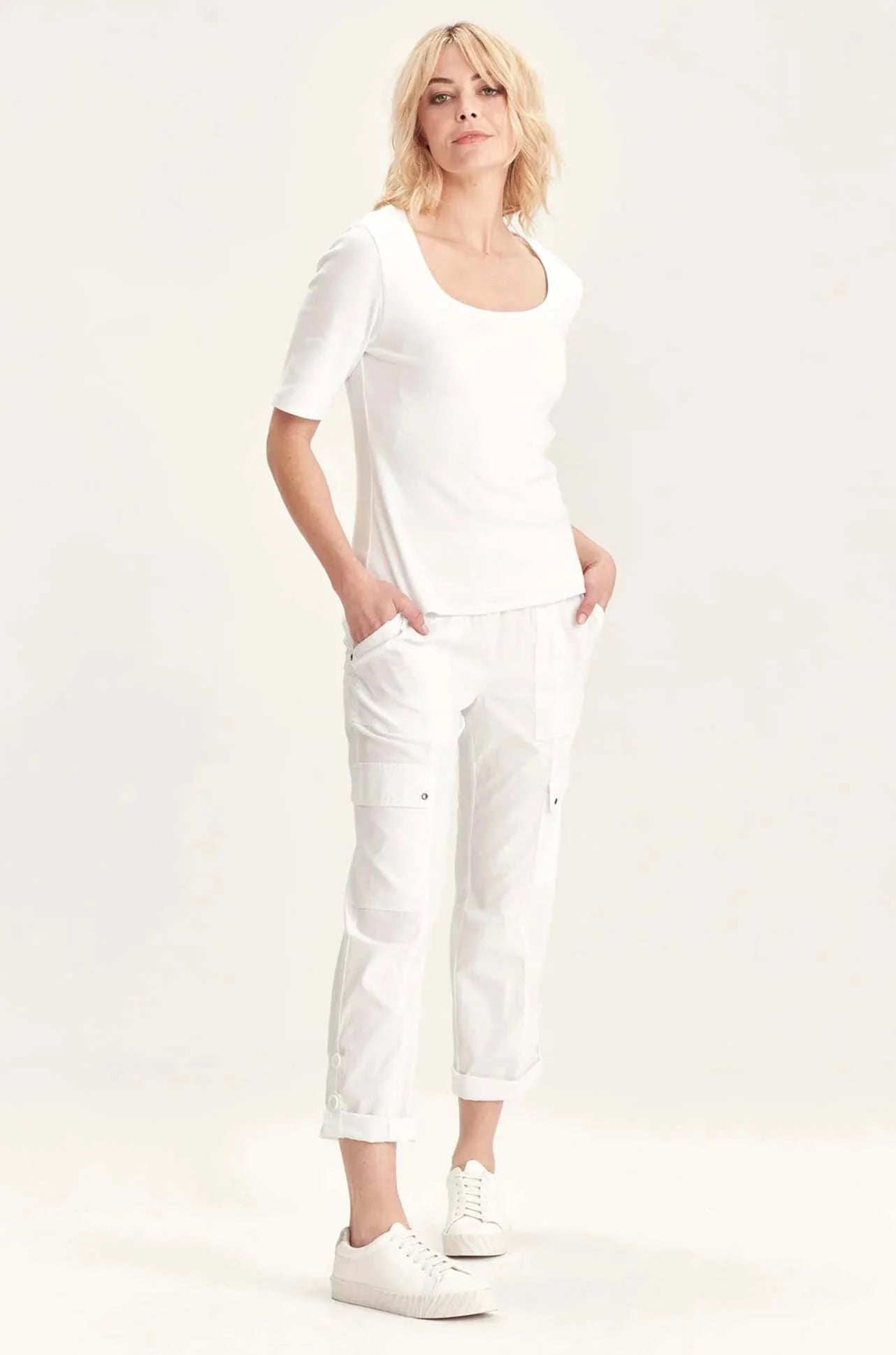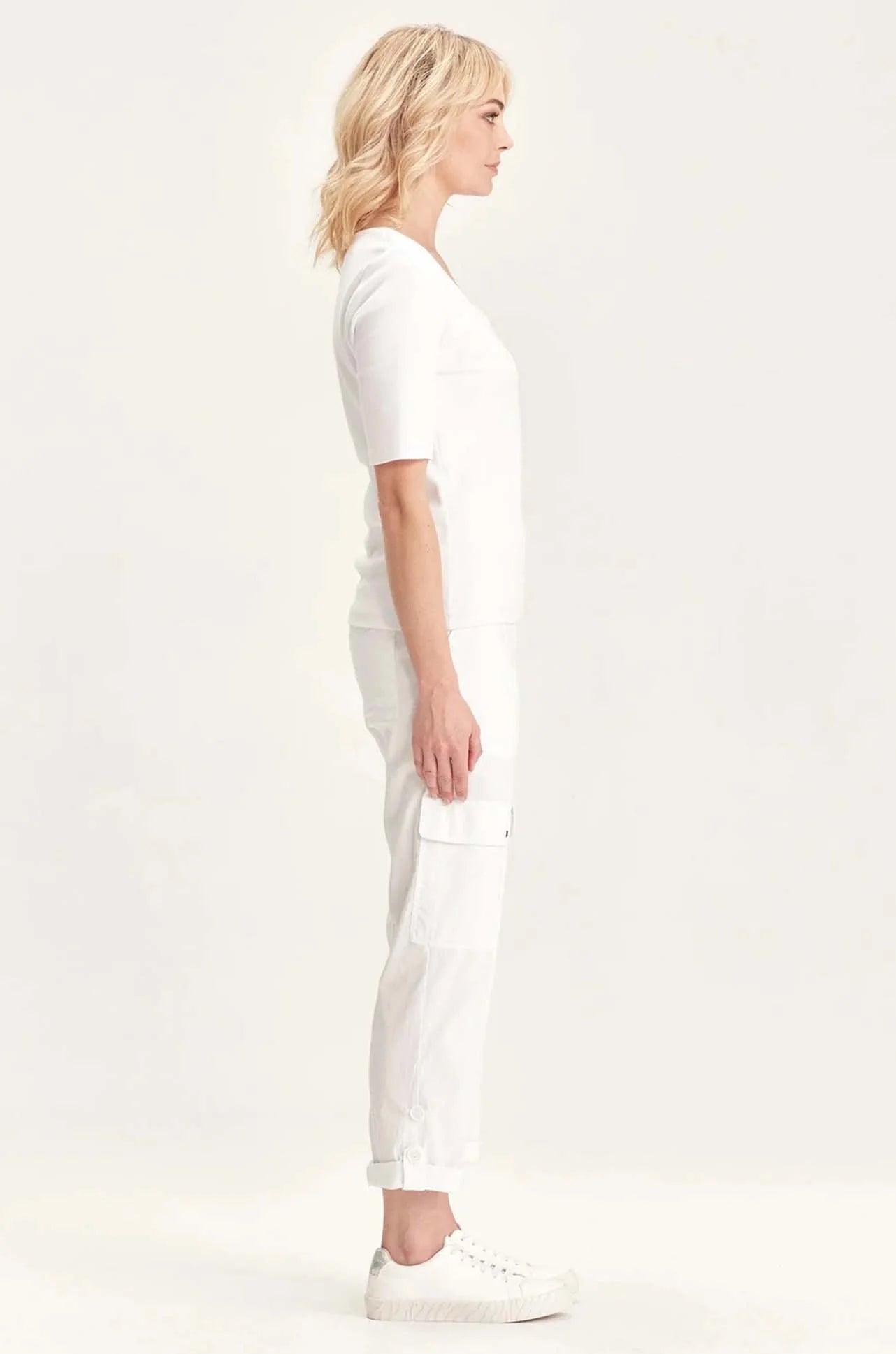 In Verge's exclusive lightweight European fabric, the Acrobat Cargo Pant has an easy fitting straight leg with multiple pockets and flattering twin-stitch detail. Wear the Cargo Pant full-length, or roll and tab it for a cropped look.