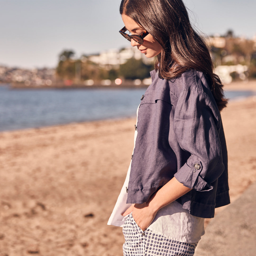 A refined take on everyday dressing, the Verge Acrobat Tile Pant blends relaxed comfort with modern polish. Crafted from Verge’s exclusive European lightweight stretch cotton Acrobat fabric, it’s celebrated for its breathability, flexibility, and easy care. Based on the much-loved Essex Pant block, this style features a relaxed leg that tapers to an ankle-grazing cuff, complete with deep front pockets and an elasticated waistband for all-day ease. The tonal bark tile-inspired print adds a contemporary edge, making this pant a versatile go-to across seasons.
