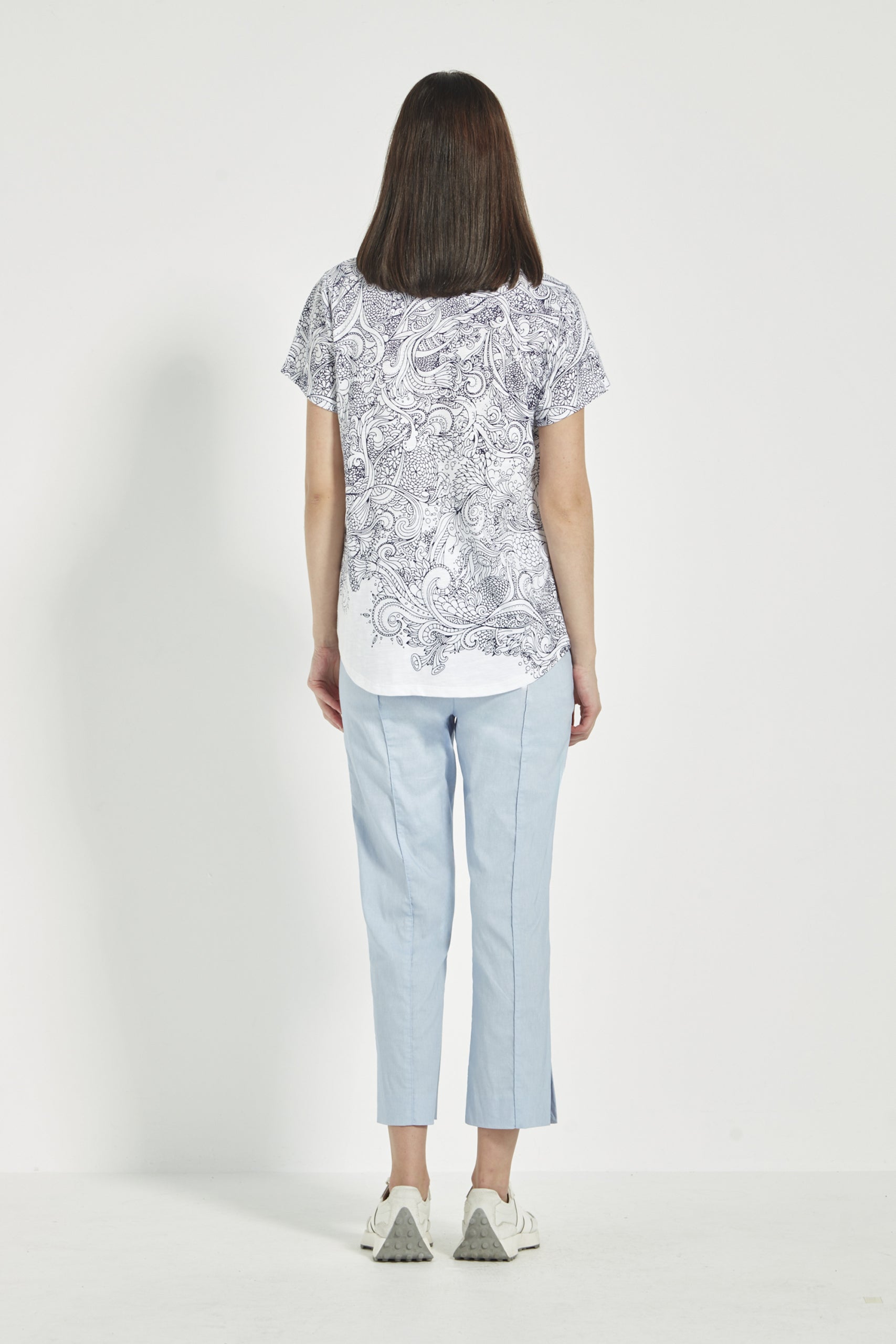 The Capricorn Top is a relaxed-fit tee crafted in 100% cotton for breathable, all-day comfort. It features a flattering V-neckline and short sleeves for easy everyday wear. Finished in a striking all-over print, it’s the perfect piece to bring colour and character to your off-duty look—effortless with denim, fresh with white.