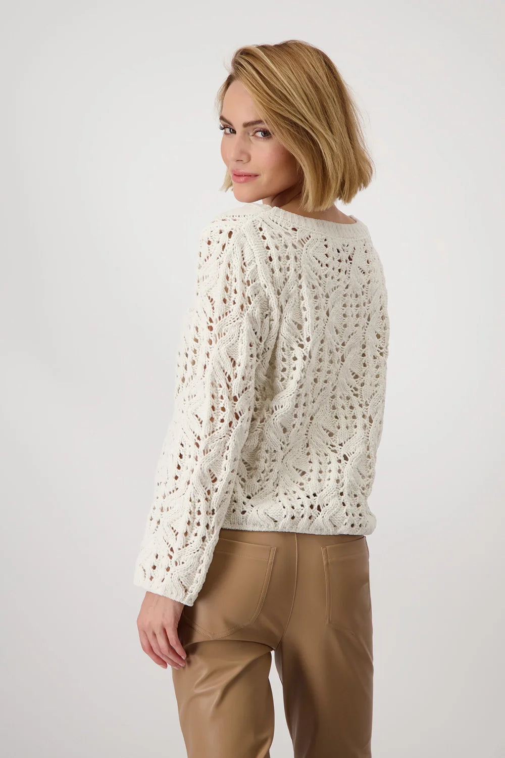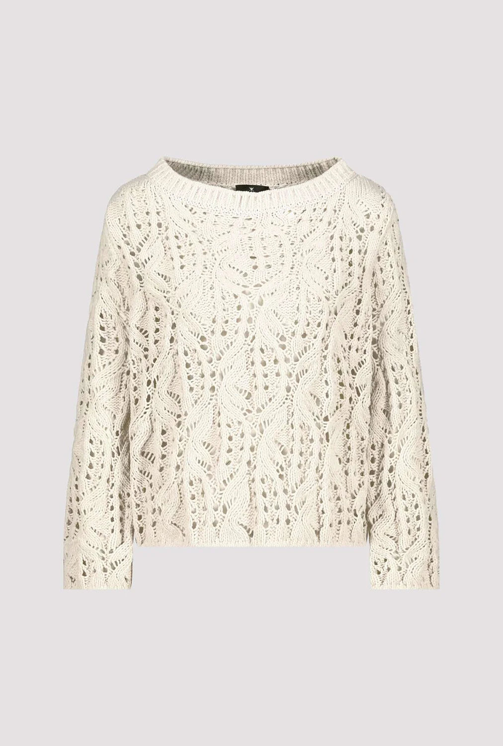 Soft and stylish, this Monari jumper is crafted from plush chenille yarn and features an elegant ajour knit pattern. Finished with a classic boat neckline and ribbed trims for a cosy yet elevated look.