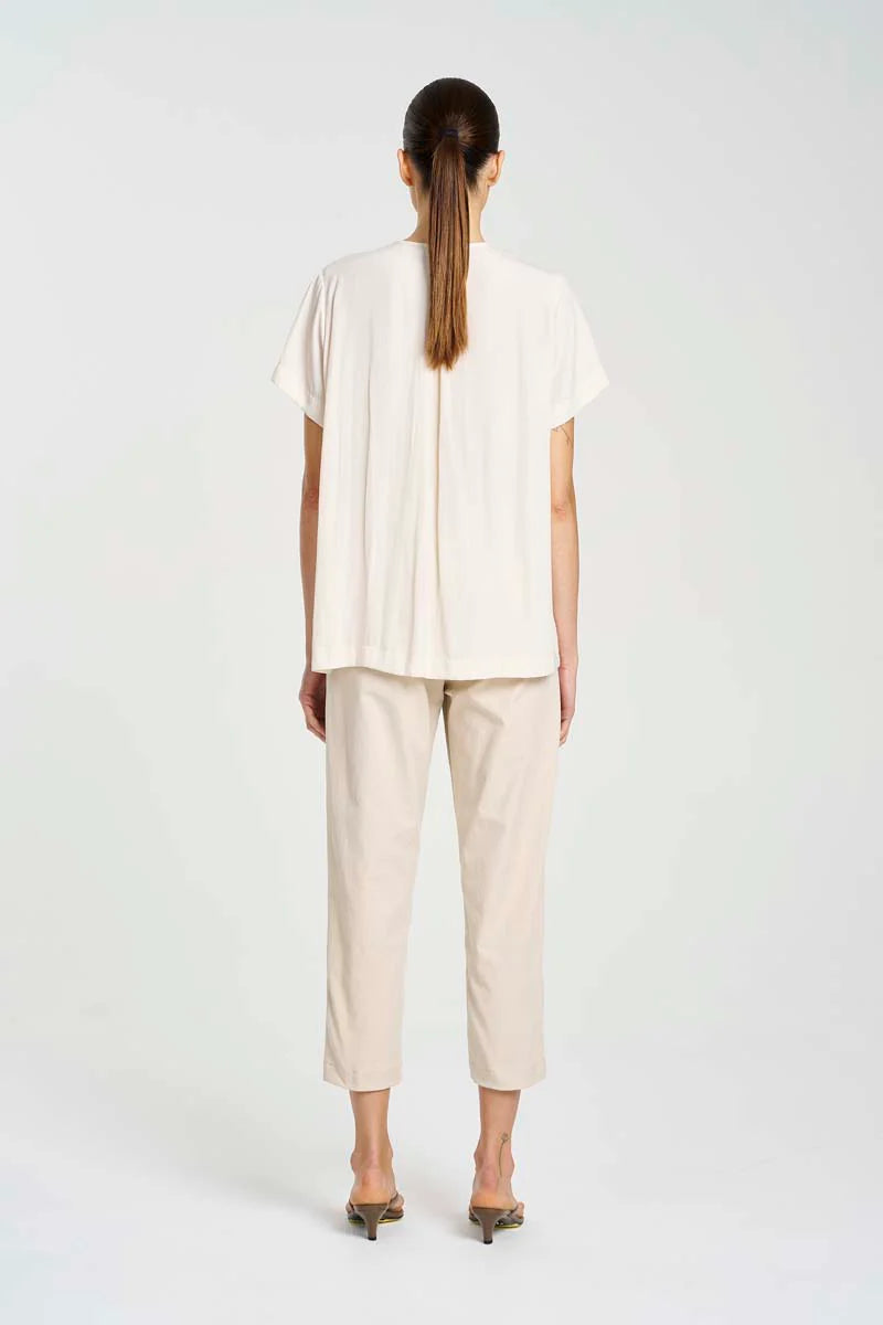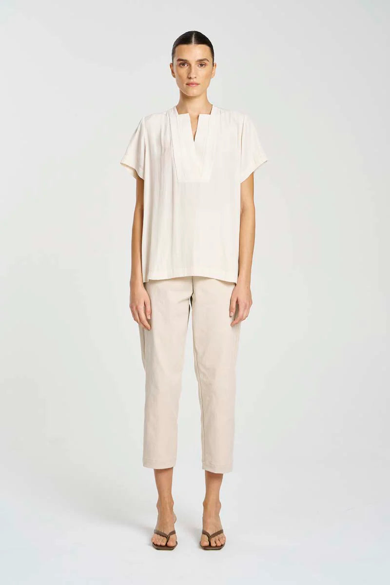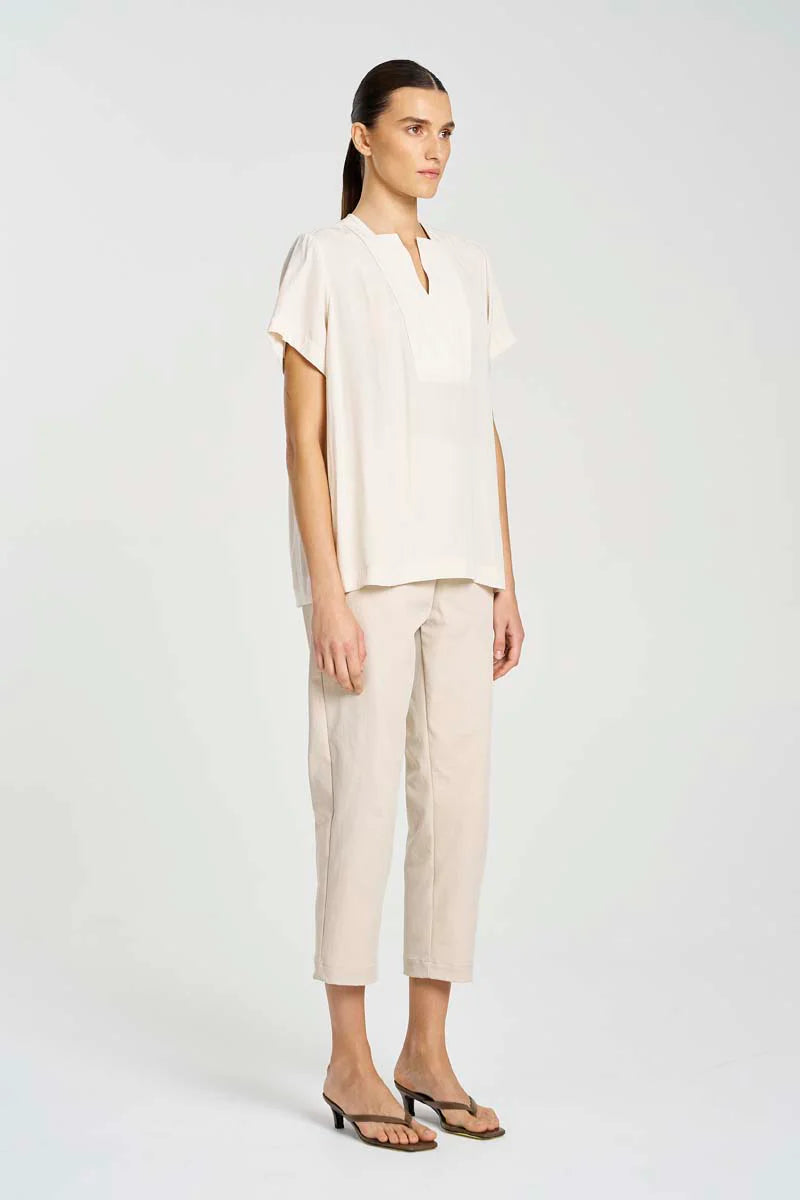 Crafted from Mela Purdie's Mache, featuring relaxed fluidity & a smooth lustre surface. The Double Vent Top features layered V Neck cross over detailing on a fitting shirt silhouette.