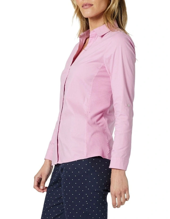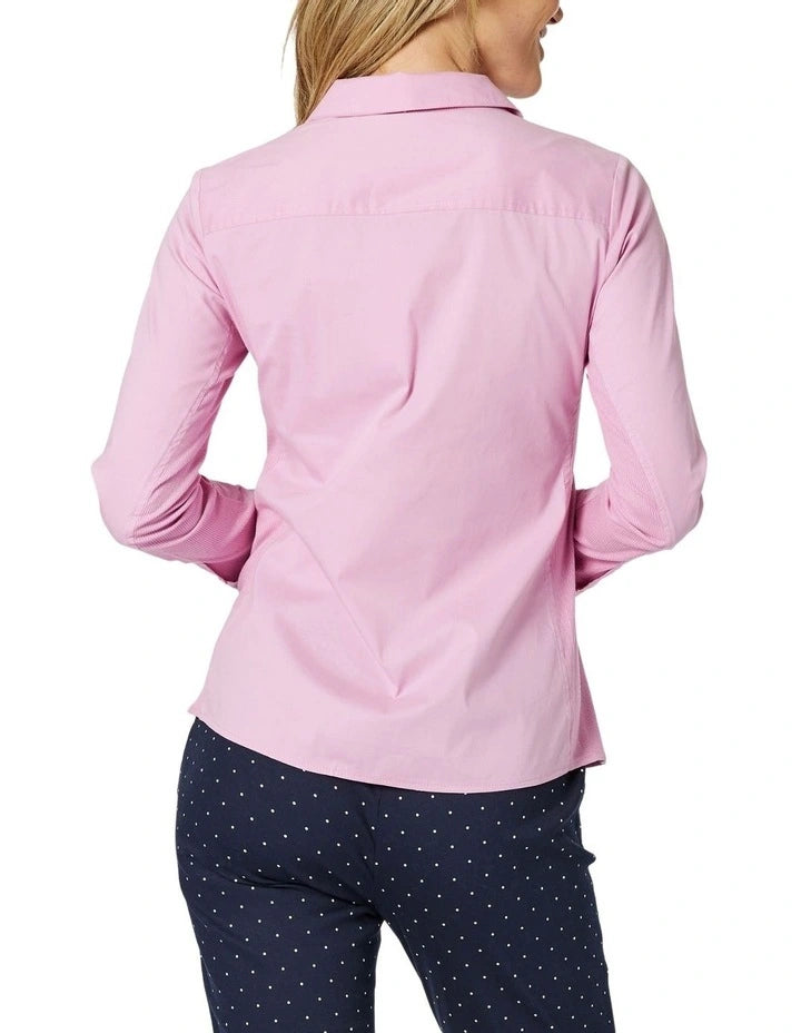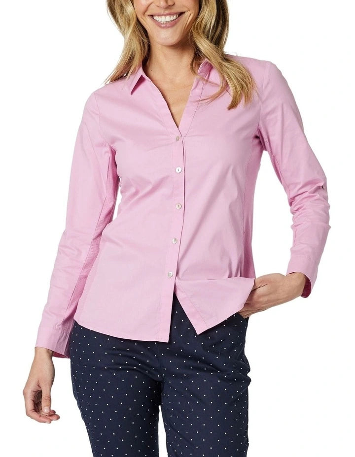 Discover effortless style with the Emma Rib Shirt by Gordon Smith. Crafted from stretch poplin, this versatile shirt features rib-knit side panels for ultimate comfort and a flattering fit. With its classic button through front design and modern detailing, its perfect for elevating your everyday look. Pair with trousers or denim for polished, relaxed elegance. Fashion that fits the way you live.