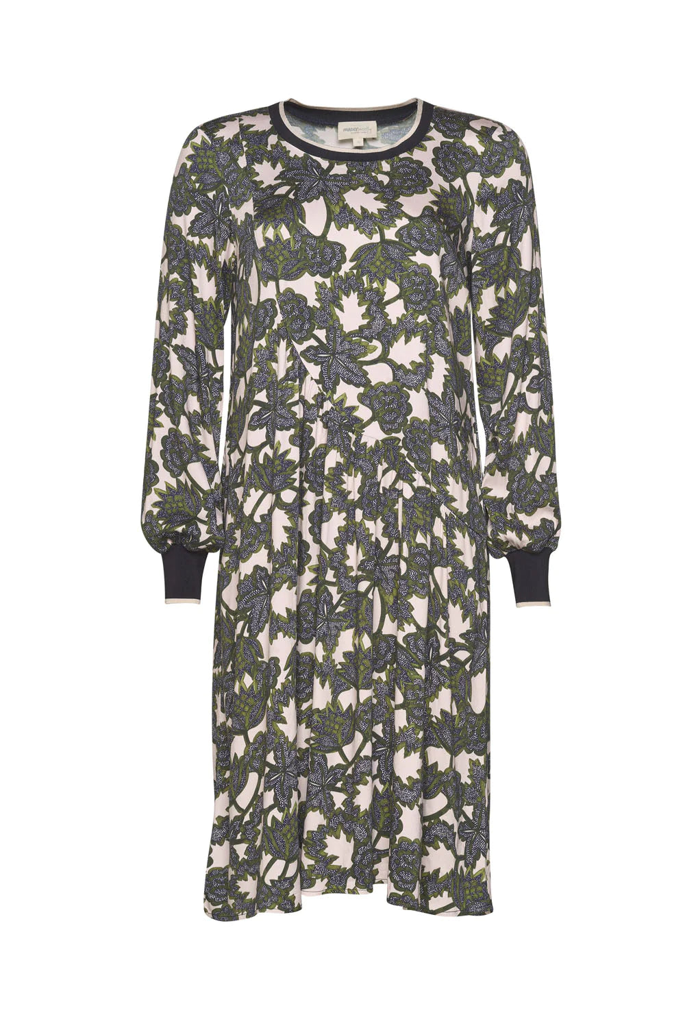 Cut in one of Madly Sweetly’s signature prints, the Hempster Dress is so effortless to wear. Cut in a soft handle stretch rayon fabrication, you’ll love the striking shades of cream, navy and olive. Finishing just below the knee, this pretty dress is gathered through the waist, with ribbed cuffs and collar adding a casual element.