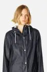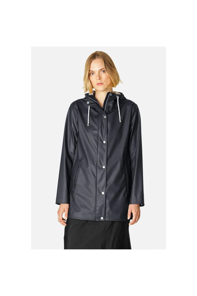 This new contemporary Ilse Jacobsen outerwear staple is a straight-fit raincoat in durable lightweight-wearing rubberized PU coated waterproof fabric. Expertly made, it’s tailored with welded seams for complete protection against the rain and with a recycled tricot backside for comfort. The drawstring hood with string in cotton look and under-arm eyelets add ease of movement and comfort in uncomfortable weather. This quality offers weather protection with a waterproof rating of 5000 mm.