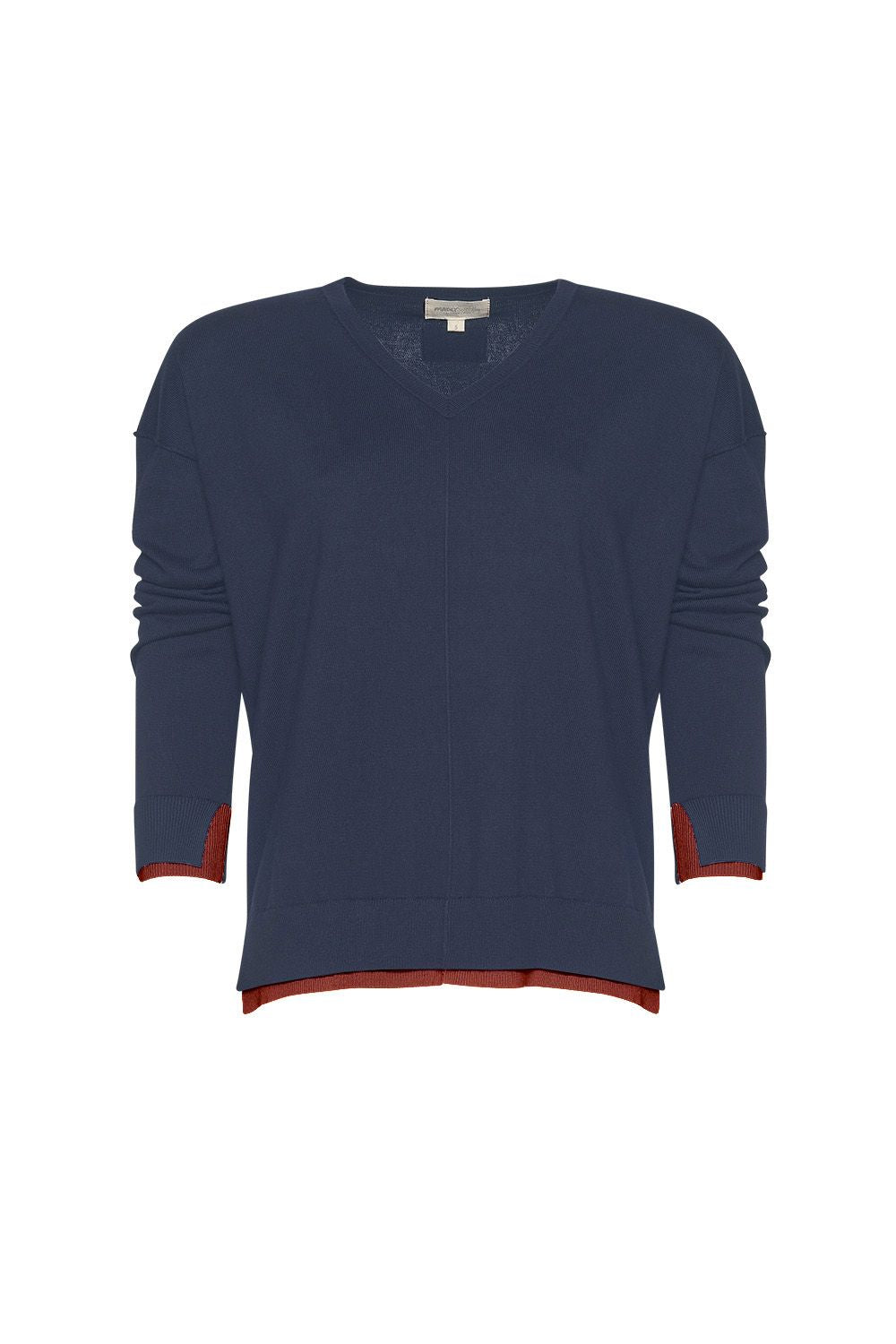 Relaxed-fit V-neck sweater featuring contrast split cuffs and hem in a soft and warm cotton-cashmere blend.