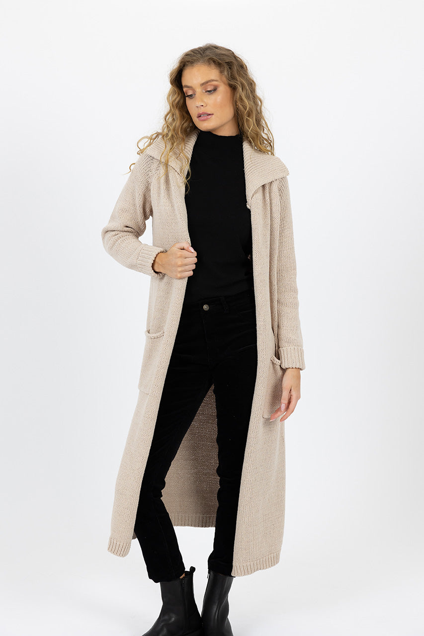 We love a natural fibre and the super warm Lottie made with 100% cotton will keep you cosy all winter long. This super soft cardigan features an oversized collar and feature pockets.