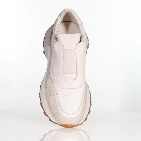 Slip on and go with Jo, your newest lifestyle sneaker that's sure to be on high rotation this season. These striking slip-ons instantly elevate your everyday look. Crafted from a luxurious blend of leather and suede, available in chic tones of ivory, silver, and sage. The slip-on silhouette is complemented by an exaggerated flexible rubber traction outsole, making Jo the perfect addition to any sneaker lover's collection.