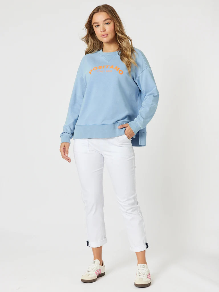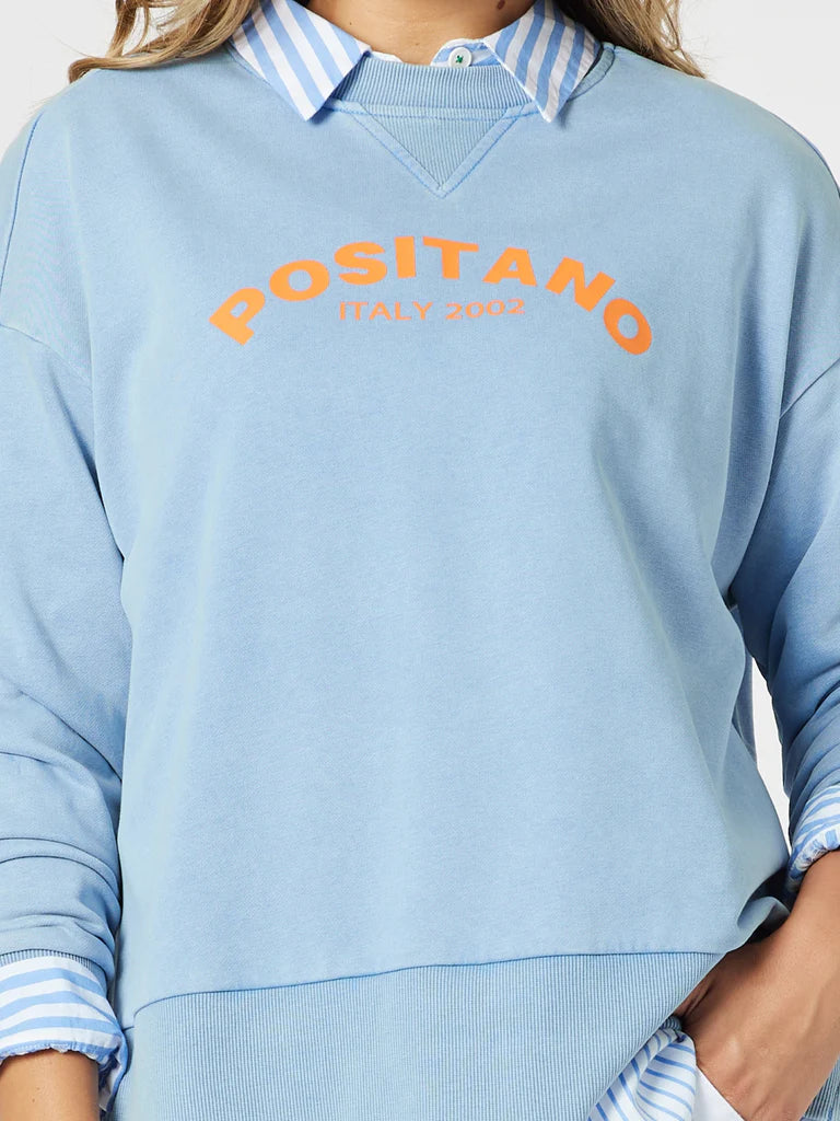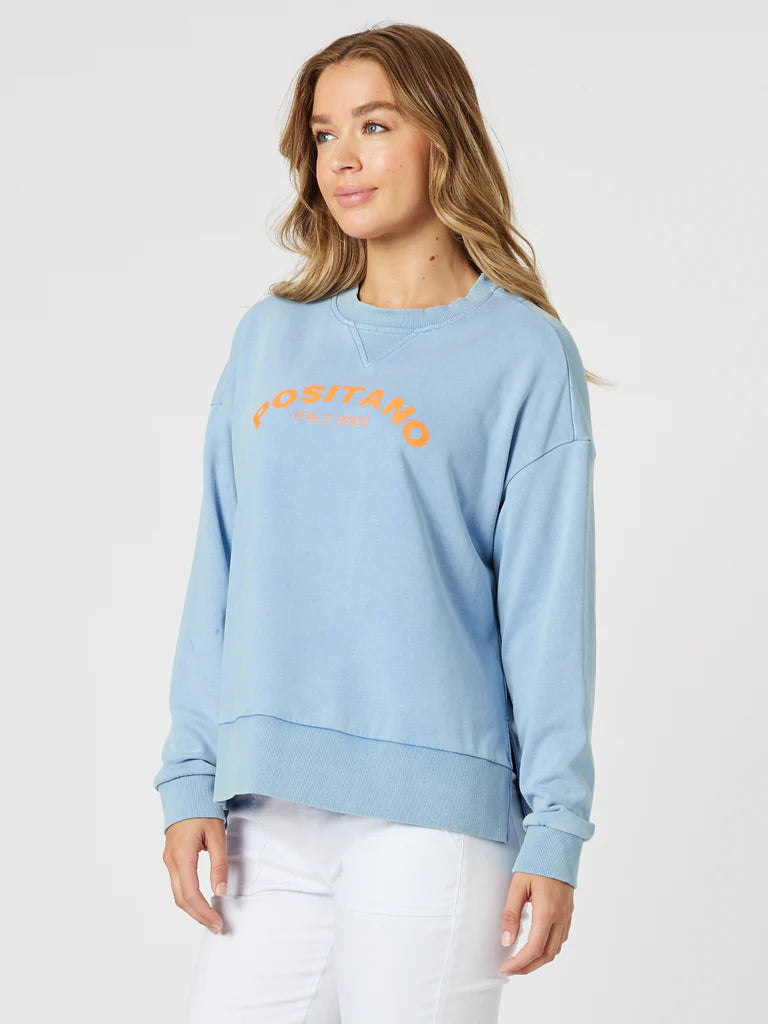 - The Positano Sweatshirt is garment dyed for a soft, lived-in feel and features a relaxed fit with subtle side splits for easy movement.