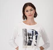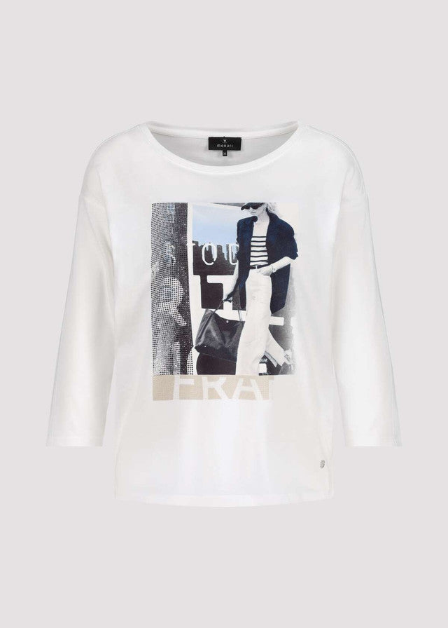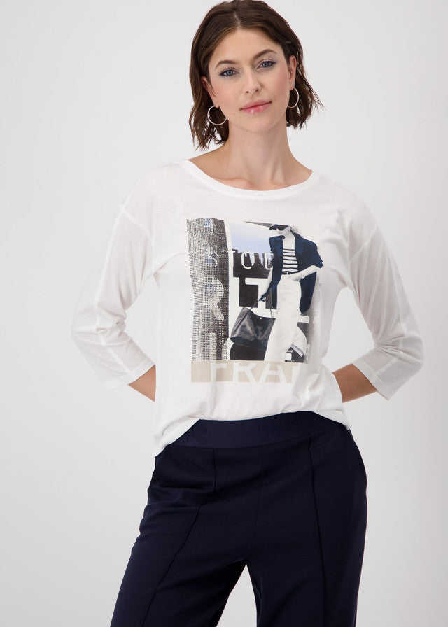 - Chic and casual, this off-white tee features a bold front print with a stylish city motif