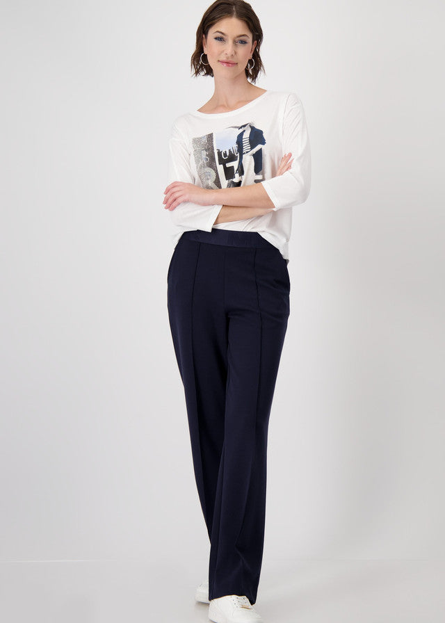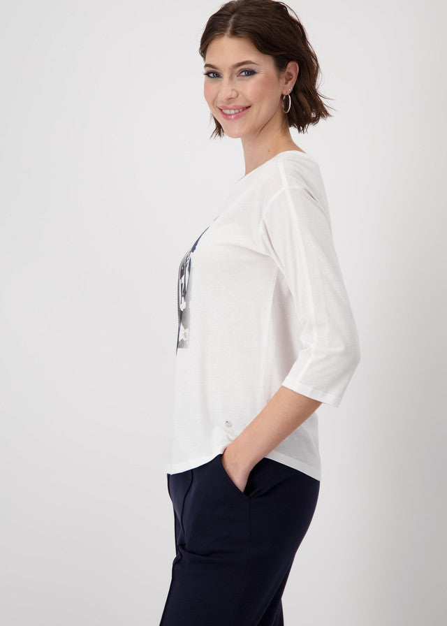 - Designed with a round neckline and three-quarter sleeves for effortless appeal