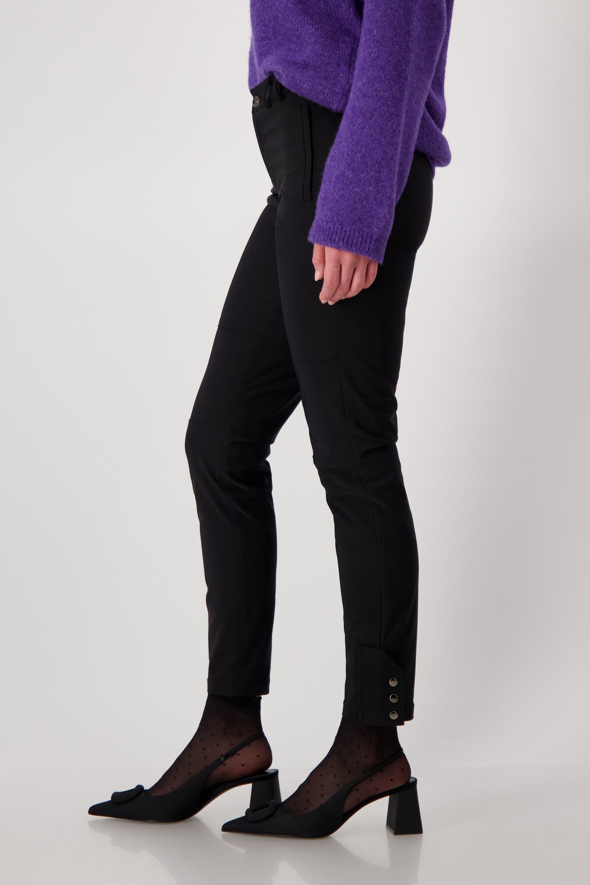 | The exceptionally elastic and easy-care quality makes these techno bottoms comfortable to wear. With their high elastane content, these jogging bottoms are as movement-friendly as a pair of shorts. A slit with a decorative press stud placket adorns the leg hems. |